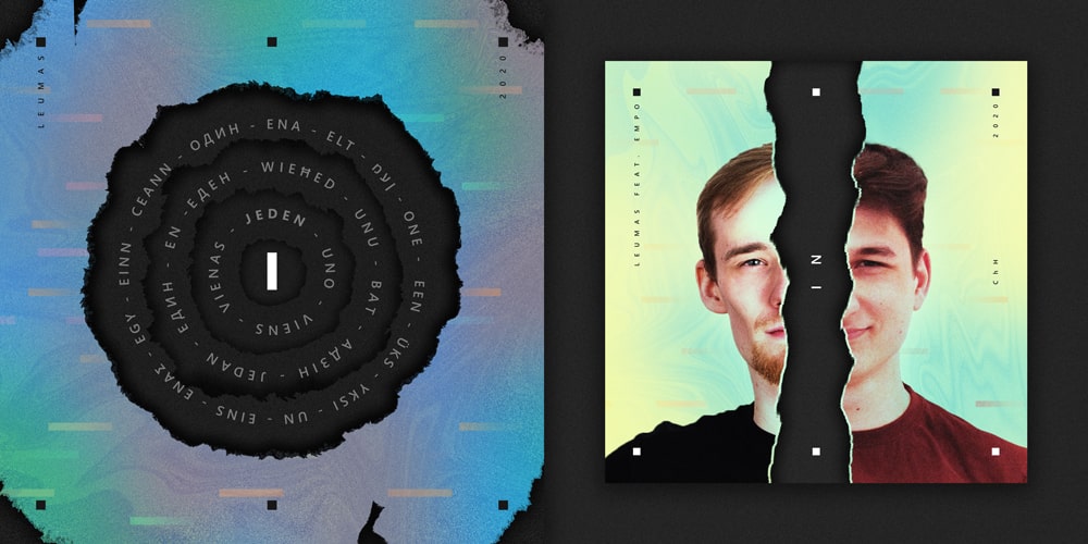From the proposed visual style, I created separate covers for each of the songs on the EP, including two specials. These were for songs on which Leumas collaborated with other authors. In these cases, I incorporated their faces into the design.