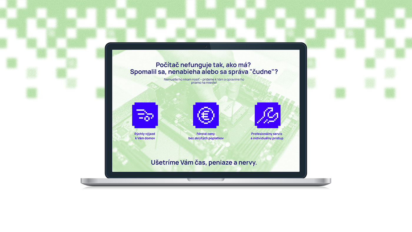 Dávid has been working in IT for over 15 years. When launching his own computer repair service, he faced a common challenge: many small IT businesses communicate in nearly identical ways — technical, generic, and visually indistinct. The goal was to create a clear and trustworthy brand that would stand apart while reflecting the practical, problem-solving nature of the service.